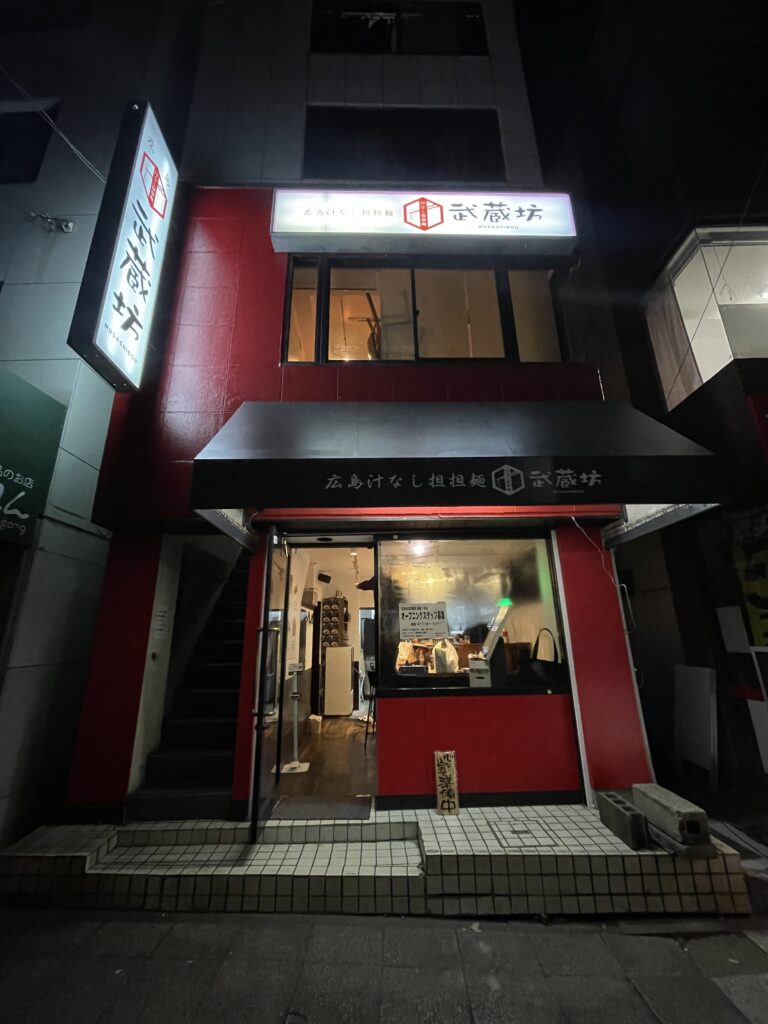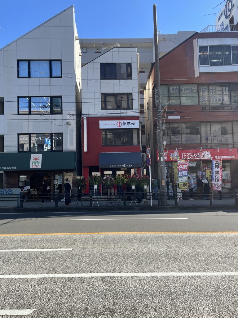 港北区役所すぐ近く、武蔵坊のブランドカラー、レペゼン広島の真っ赤な建物がすぐに目につきます!